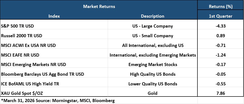 Iran and oil dominated the first quarter's narrative. For perspective, West Texas Intermediate (WTI) crude started the year around the mid-$60s per barrel, suggesting a globally oversupplied market. These sentiments suddenly changed when the flow of energy supplies through the Strait of Hormuz was effectively shut down. As a result, crude oil prices soared approximately 53% in March alone, its strongest monthly gain since May 2020, and currently hovers around $90 per barrel.